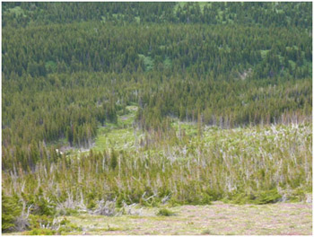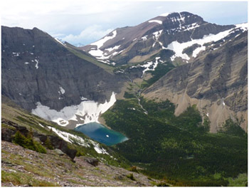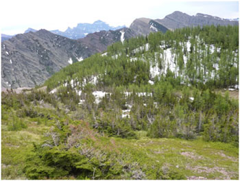 ![]() This image shows the "false" Bertha Peak which towers over the Waterton townsite. |