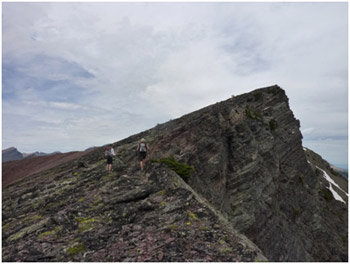 It is another beautiful, sunny day in Waterton Lakes National Park! We set out to summit Bertha Peak and return home on the Alderson Trail. Bertha lake is only 4 km from the trailhead, which starts in the townsite. It took us 1.5 hrs to hike to Bertha Lake. There were nine hikers in our group: seven in our 50’s, Christie (mid-20’s), and Clay (19). |
